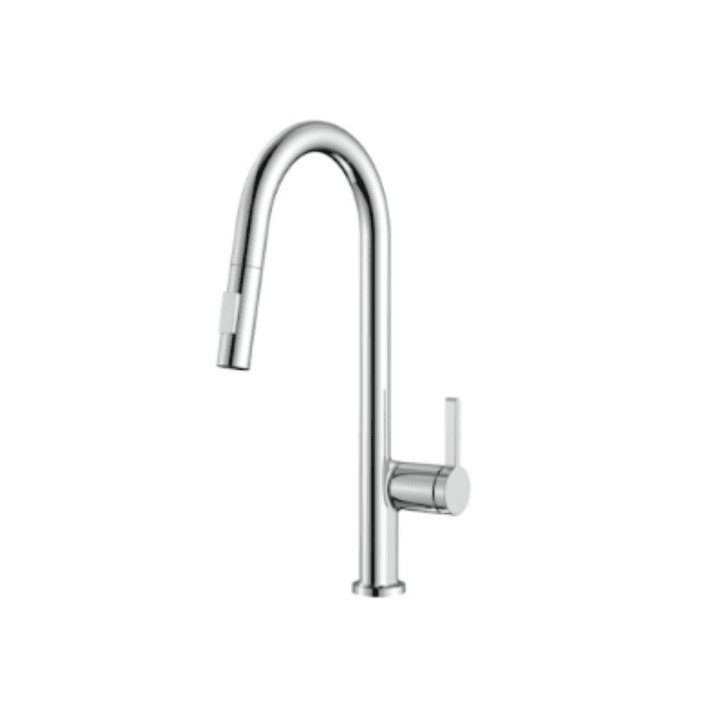 The product is a PULL–OUT Kitchen Sink Mixer With Swivel Flexible Spout
